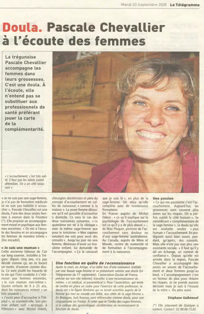 La trégunoise Pascale Chevalier accompagne les femmes dans leurs grossesses. C’est une doula. A l’écoute, elle n’entend pas se substituer aux professionnels de santé préférant jouer la carte de la complémentarité.