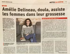 Après avoir été suivie régulièrement par son gynécologue et sa sage-femme, Amélie Delineau constate assez vite qu’elle se retrouve seule avec son bébé. Elle évoque un « vide de post-partum », l’après accouchement étant pour elle le moment où la femme a le plus besoin d’être accompagnée. Elle ne peut observer qu’une dichotomie entre l’image édulcorée de la naissance véhiculée par la société et la réalité où la majorité des couples se retrouvent souvent isolés et sans ressources. Sa deuxième grossesse lui fait prendre conscience qu’elle ne peut pas tout gérer et elle décide d’entreprendre une formation pour être doula, dans le cadre d’un accompagnement périnatal et en complément d’un suivi médical. Elle suit le couple et la famille pendant et après la grossesse, durant les PMA mais également pendant le deuil périnatal, qui reste encore aujourd’hui un tablou. En plus d’un soutien émotionnel, physique et pratique aux parturientes, elle propose des soins (massage, bercement). Une des problématique qui l’intéresse particulièrement est la reprise professionnelle des mamans, en écoutant leurs envies et en faisant connaître leurs droits. La jeune femme de 32 ans animera par la suite des ateliers de portage, d’allaitement. Elle n’aura pas de cabinet mais se déplacera vers la maman, une démarche humaine au plus près de la femme et de sa famille.