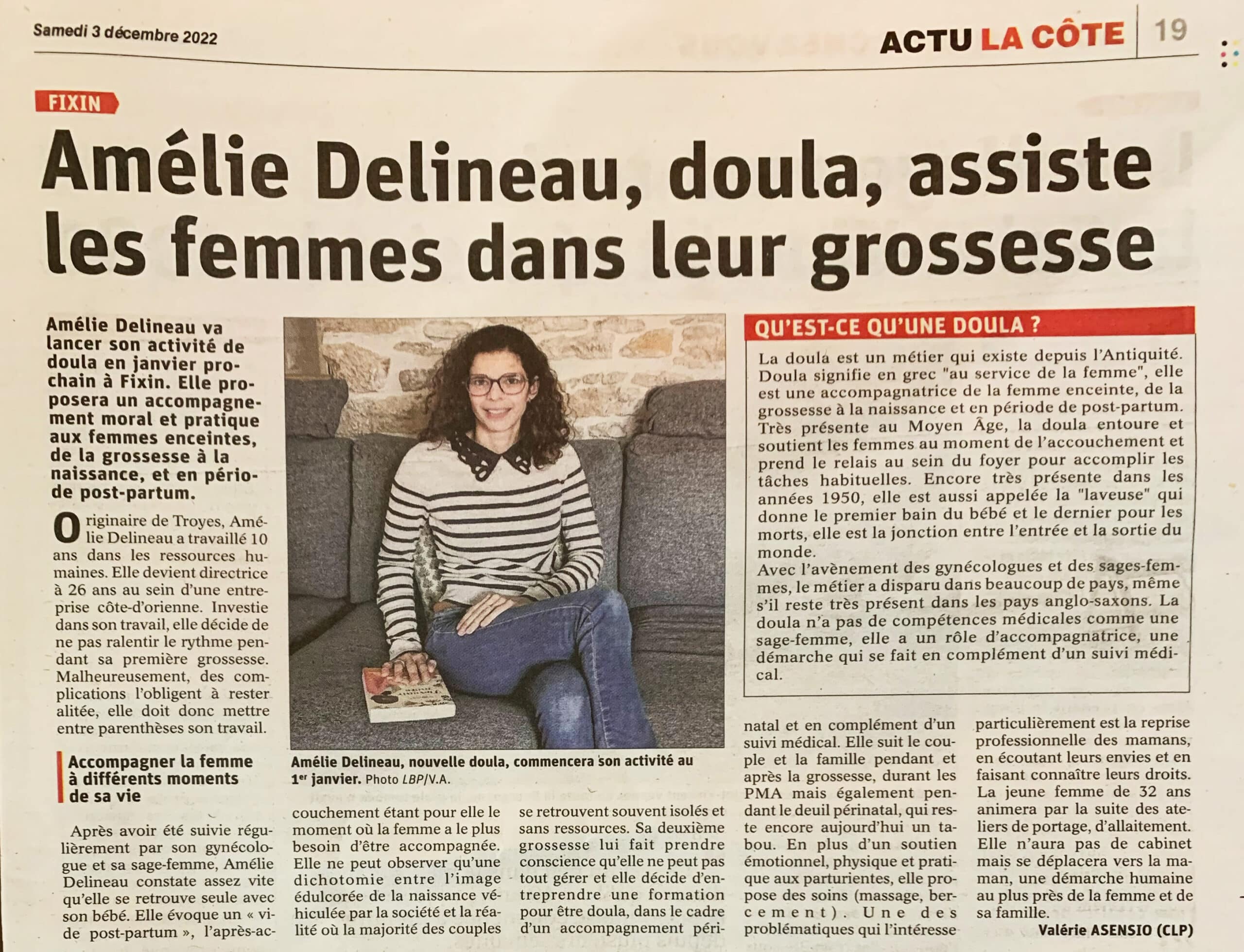 Amélie Delineau va lancer son activité de doula en janvier prochain à Fixin. Elle proposera un accompagnement moral et pratique aux femmes enceintes, de la grossesse à la naissance, et en période post-partum.