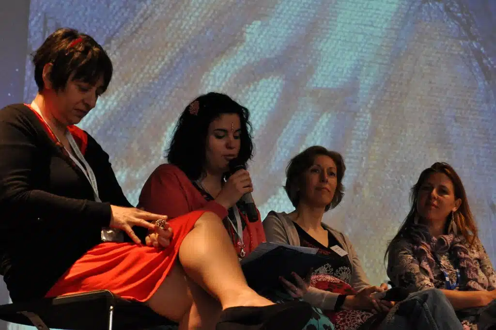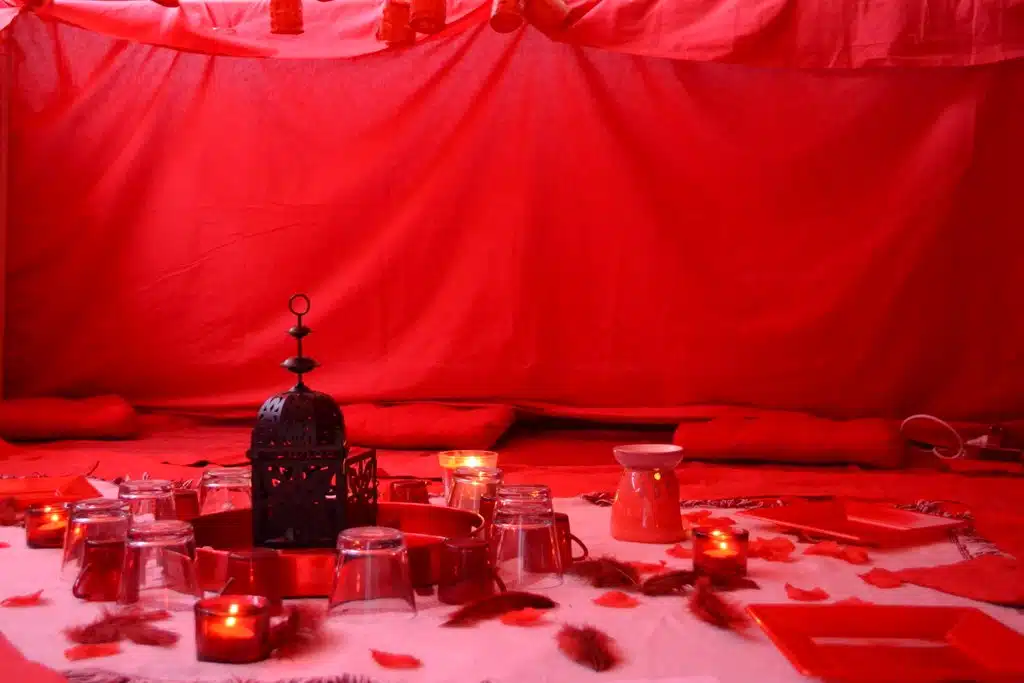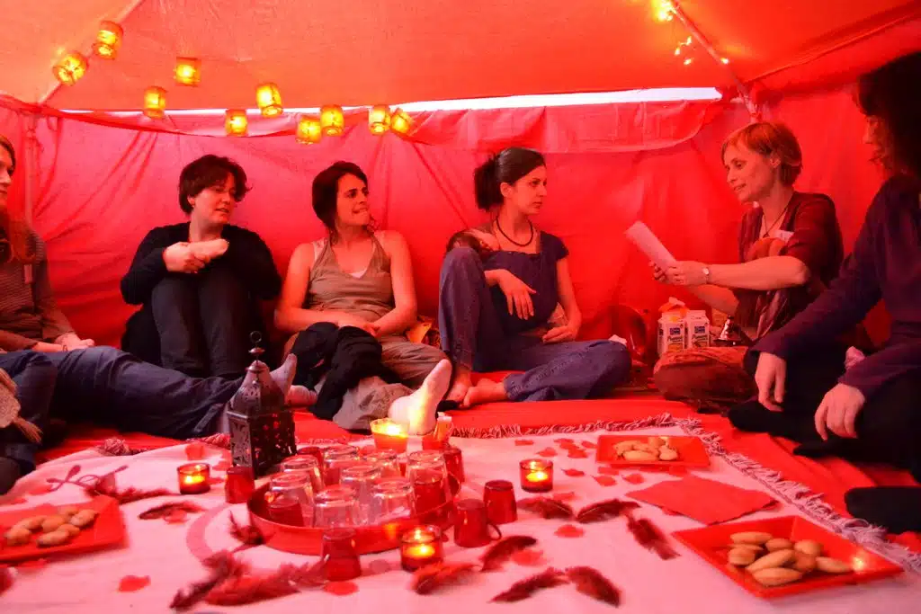 Les tentes rouges sont des groupes de paroles de femmes qui racontent leurs histoires dans une ambiance plutôt intimiste. La tente rouge est une référence à une tradition ancienne de regroupements des femmes en un lieu qui leur est dédié, pour célébrer les grands événements de la vie sexuelle d’une femme : puberté, grossesse, naissances, …