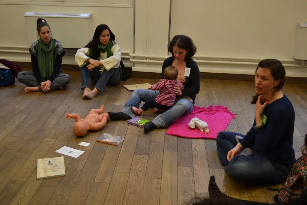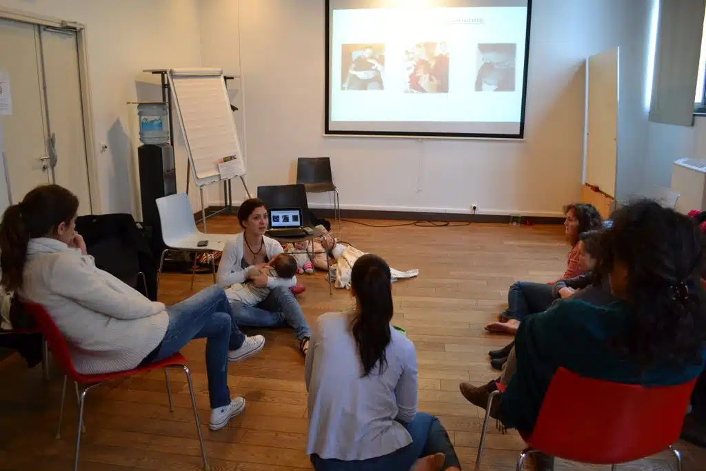 « Atelier d’information sur les bienfaits du portage »: les savoirs de bases transmis de doulas à parents, le portage dès la maternité avec un tout petit bébé, une césarienne ou un handicap avec Ingrid Fouladoux de l’association Douce Vie