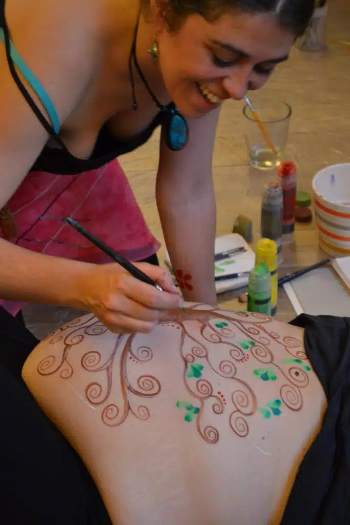 Belly art : femmes arc-en-ciel » avec Claire Ferracci, Perrine Guillon Moktan, Magali Pavy, Solenn Minier et Margot Winterhalter