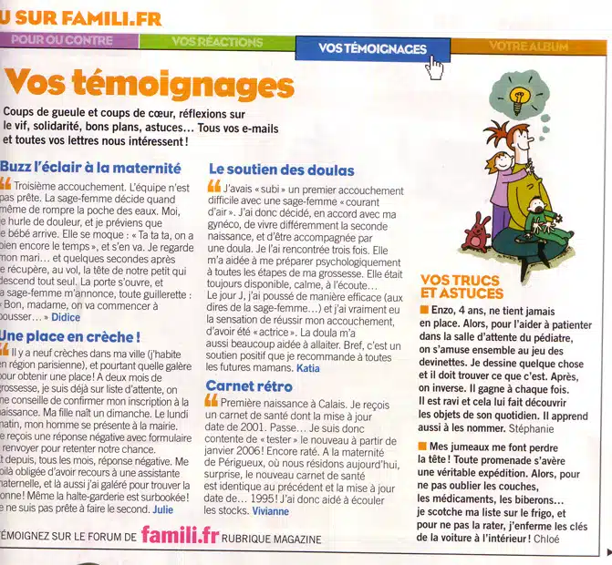 J’avais subi un premier accouchement difficile avec une sage-femme « courant d’air ». J’ai donc décidé, en accord avec ma gynéco, de vivre différemment la seconde naissance, et d’être accompagnée par une doula…