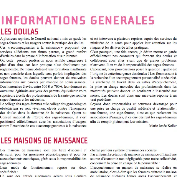 À plusieurs reprises, le Conseil national a mis en garde les sages-femmes et les usagers contre la pratique des doulas.