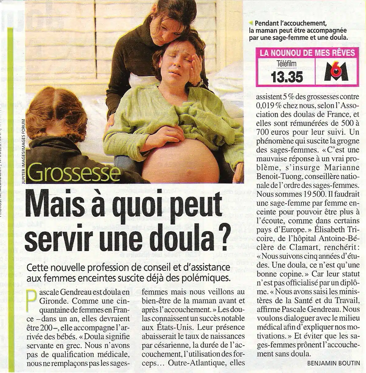 TV Grandes Chaines, semaine du 28 décembre 2007 Cette nouvelle profession de conseil et d’assistance aux femmes enceintes suscite déjà des polémiques. Read more articles Article précédentDoulas : des nounous pour les mamans Article suivantDoulas, un nouveau métier ? Vous devriez également aimer Près de Pont-Audemer, Angélique Ballue exerce la profession méconnue de « doula » 12 août 2021 Avec les doulas qui accompagnent les familles LGBT+ dans un monde de la parentalité ultra genré 17 février 2022 Le «coaching» des femmes enceintes inquiète les professionnels 28 septembre 2007 France Bleu Herault, Les P’tits Loups 19 juin 2007 Mon futur bébé n’est pas un numéro 19 mars 2012 Frédérique, profession doula 12 juillet 2007